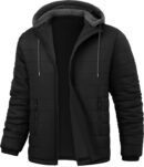 - Practical & Lightweight Jacket: This black winter jacket men comes with two zipper spacious pockets, providing ample storage space for your essentials like phone, wallet, or any daily items you need. Featuring a gray detachable hood, this men’s winter work coats gives you the option to switch between different styles. Men’s full zip winter parka with adjustable drawstring can retain heat to keep you warm.