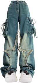 - 🌟 Functional Cargo Pockets for Utility Style – Designed with multiple oversized pockets, these jeans not only highlight the workwear-inspired aesthetic but also provide practical storage for phones, wallets, and small essentials. A perfect mix of streetwear cargo jeans, utility denim trousers, and oversized festival pants, making them a must-have for active urban lifestyles.