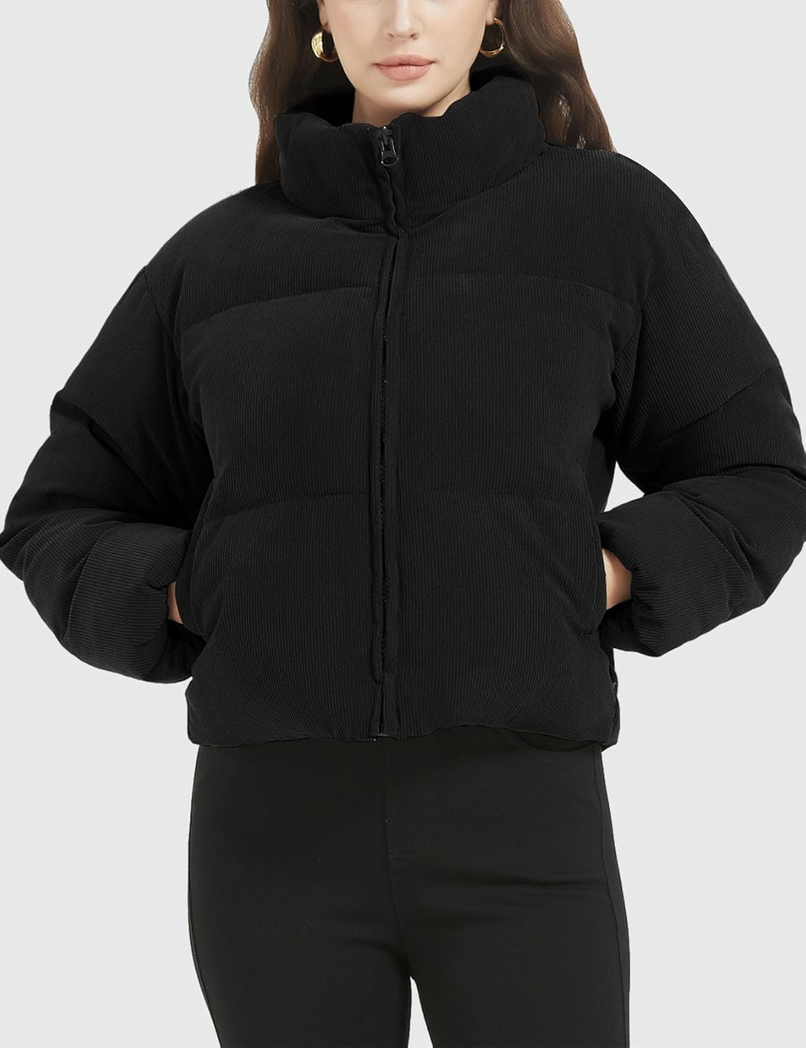 - Match – Versatile short bubble coats can be styled with tshirts, hoodie, jeans, leggings, knee boots, etc, easy dressed up or down, winter coats for women will give you a stylish and comfy fit, warm down jackets, zip up crop corduroy jackets